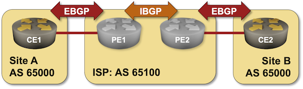 The bgp.domain plugin allows you to create multiple independent copies of the same autonomous system, for example, when testing MPLS/VPN topologies in which all customer sites use the same AS number.